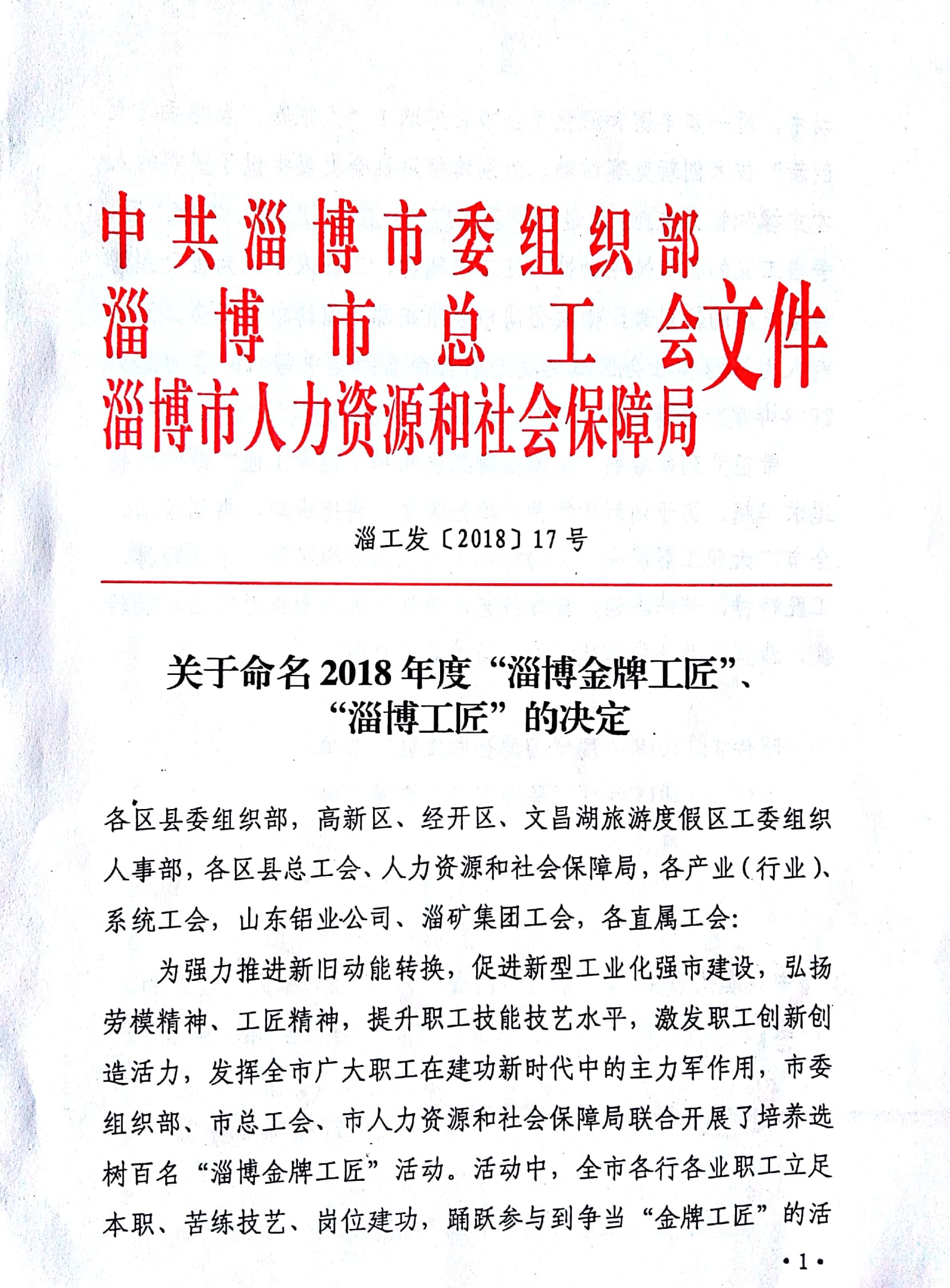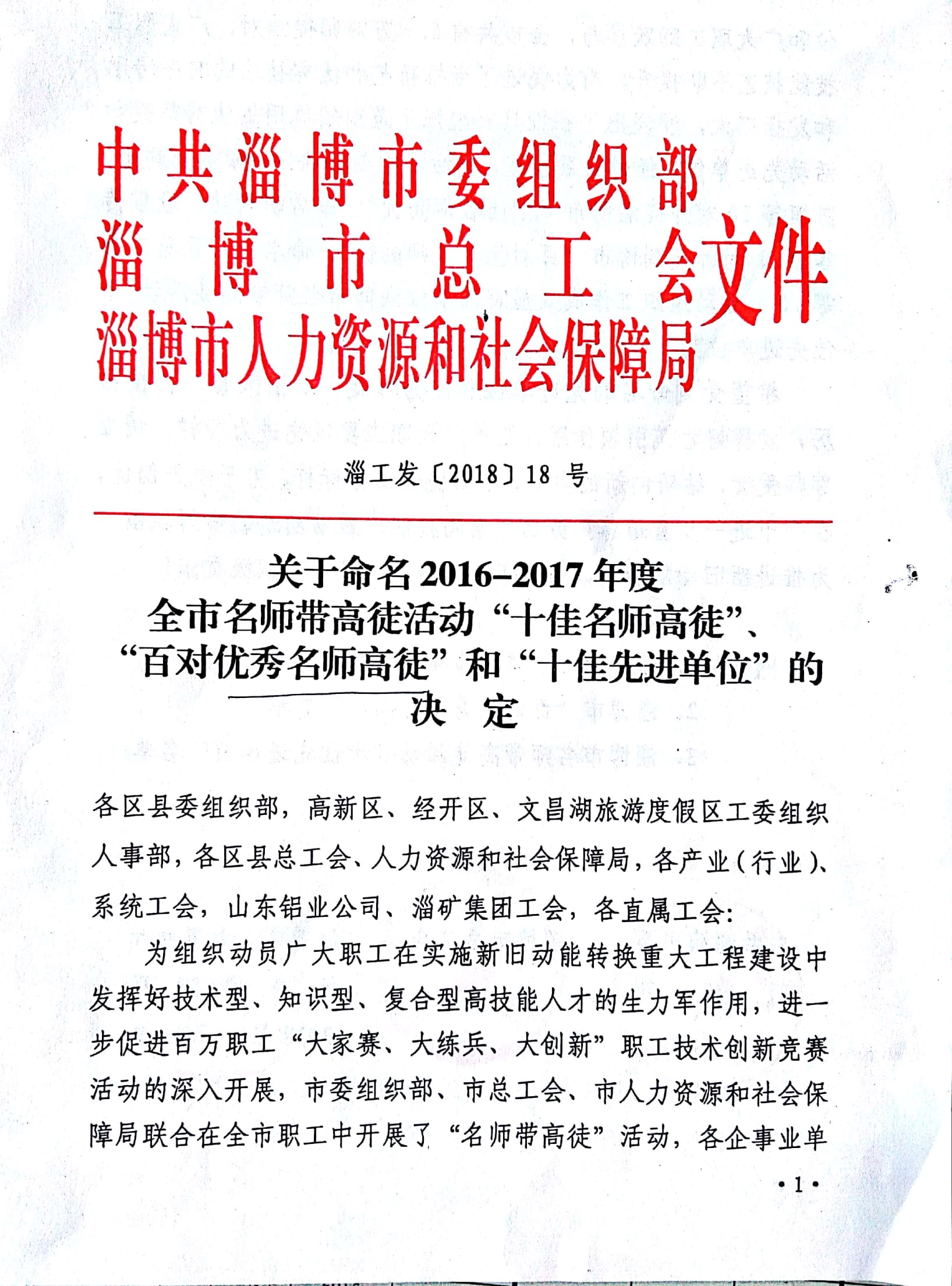 為了推進(jìn)我市新舊動(dòng)能轉(zhuǎn)換,促進(jìn)新型工業(yè)化強(qiáng)市建設(shè),弘揚(yáng)勞模精神、工匠精神,使百萬(wàn)職工“大家賽、大練兵、大創(chuàng)新”技術(shù)創(chuàng)新競(jìng)賽活動(dòng)深入開展,發(fā)揮全市廣大職工在建功新時(shí)代中的主力軍作用,市委、市政府多個(gè)部門聯(lián)合在全市開展了“尋找身邊的淄博工匠”和“名師帶徒”活動(dòng)。經(jīng)過層層推薦、網(wǎng)絡(luò)公示評(píng)選、組委會(huì)考核評(píng)定,我公司被命名為淄博市名師帶徒活動(dòng)“十佳先進(jìn)單位”;員工劉立新被授予“淄博工匠”榮譽(yù)稱號(hào);命名公司員工錢文革、劉龍根、王新艷、丁燁為“淄博市百對(duì)優(yōu)秀名師高徒”。