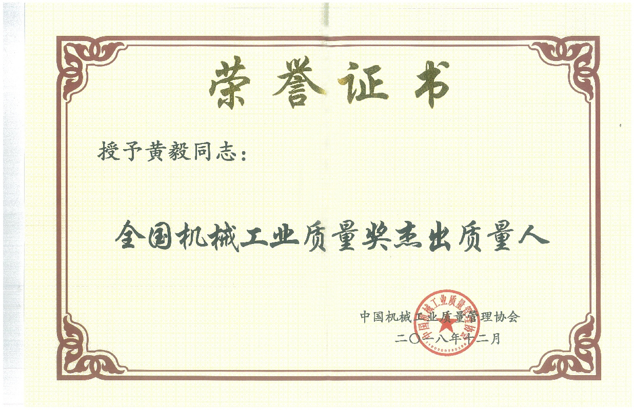 摘要:黃毅董事長榮獲“全國機械工業(yè)質(zhì)量獎杰出質(zhì)量人”榮譽稱號