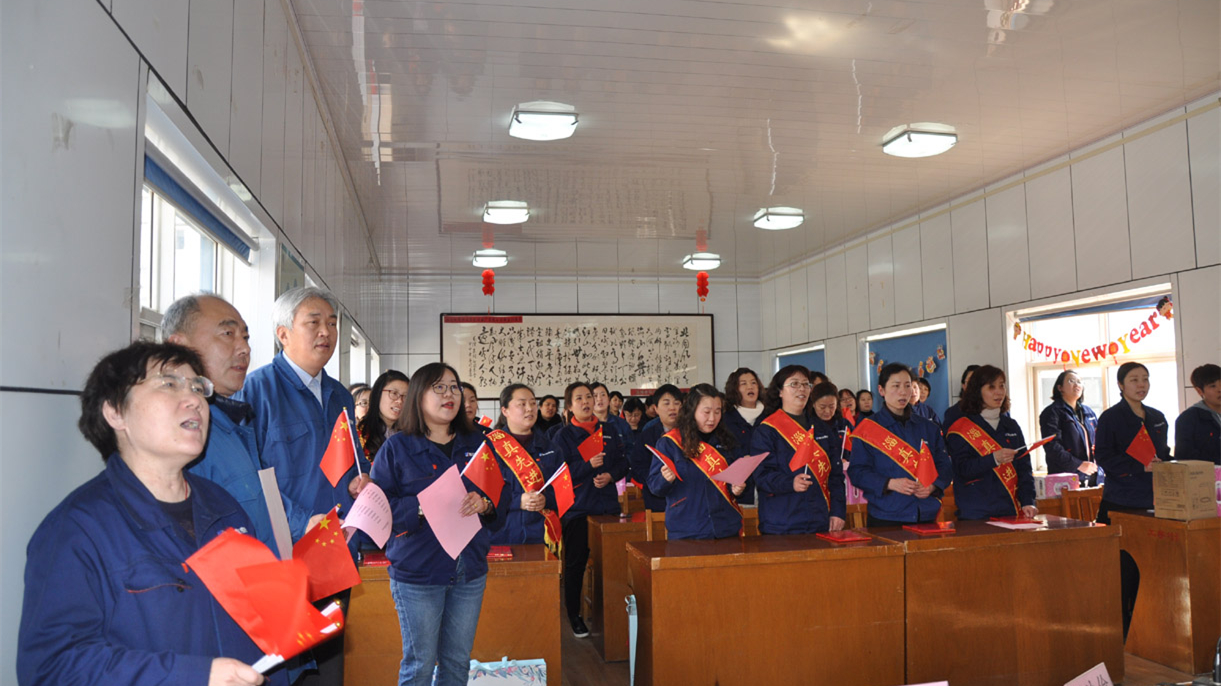 會后,公司領(lǐng)導(dǎo)和全體女工合唱“我和我的祖國”,揮動的五星紅旗,一朵朵璀璨的女工之花,在淄真的舞臺上魅力綻放。